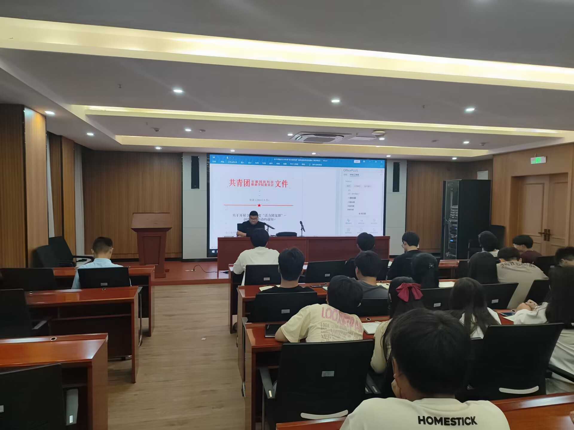 5月31日晚,校产教融合中心第一报告厅,电气技术学院团总支书记首先就团员发展、智慧团建及第二课堂管理为同学们做了专题培训,接着他领学了习近平总书记五四对青年寄语和习近平与大学生朋友们第二卷第21专题习近平勉励我们“职业教育前景广阔,大有可为”。最后,学院团总支学生兼职副书记、校2024年度“魅力团支书”张宏宇为大家做“活力团支部”建设案例分享。