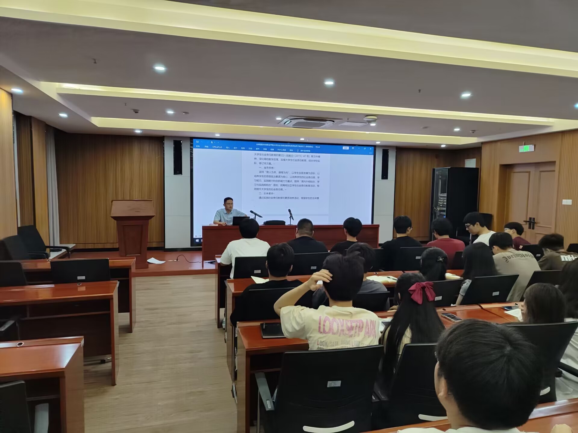 接着,电气技术学院辅导员申晓伟以学生干部的法律意识与法律观念为题,结合大量鲜活的案例故事,为大家普及了法律知识与法律常识。