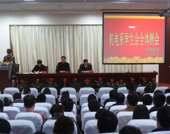 3月6日下午4点半,机电系团总支在学院报告厅召开了新学期首次学生会干部例会。党总支书记孙良平、副书记叶启衡、团总支书记刘严出席了本次会议,会议由系学生会主席张瑞文主持,学生会全体成员和各班级主要学生干部都参加了会议。