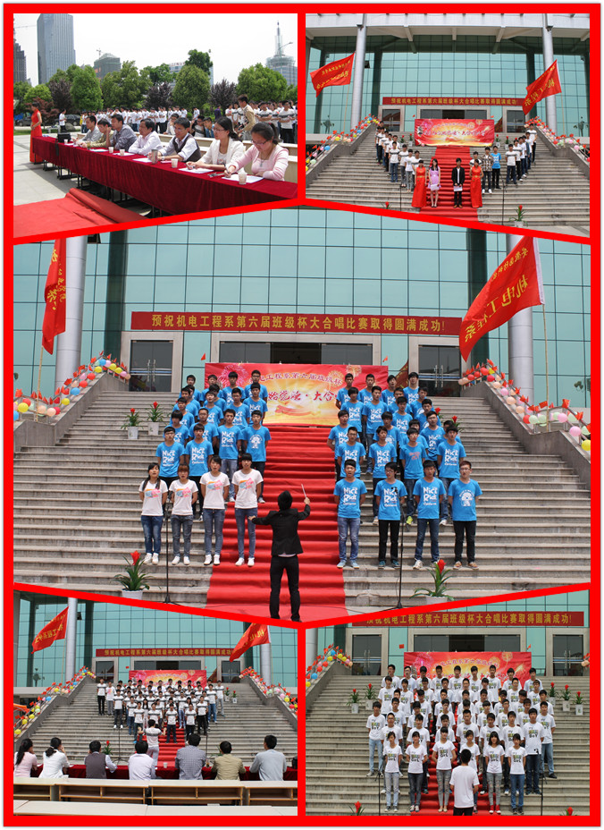 5月5日中午12:00,机电工程系“青春激扬红五月·唱支红歌给党听”班级杯大合唱比赛在院图书馆广场隆重举行。系党总支书陈兆同,院团委副书记张伟业,系党总支副书记罗威、办公室主任史媛芳、团总支书记张红军、辅导员汤晓莉、杨志清老师受邀担任评委。