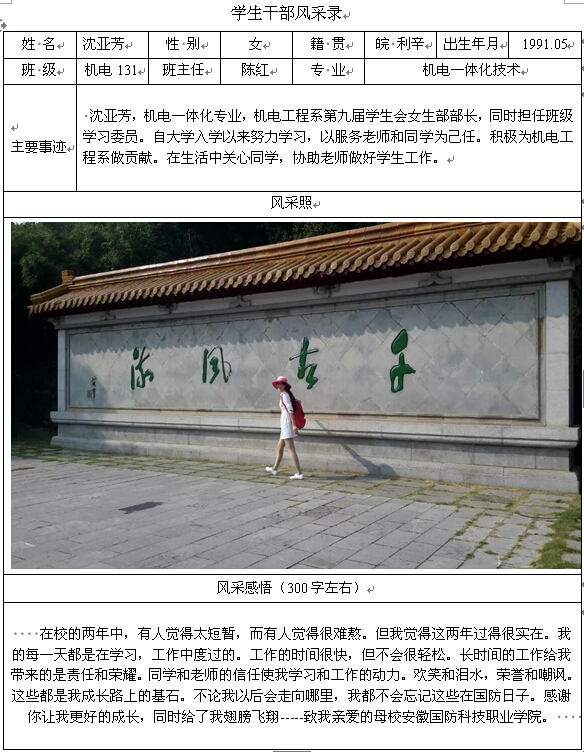 机电工程系学生干部风采录——沈亚芳
