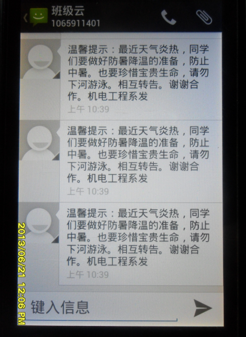 首先,我系学生党支部组织在校预备党员召开“机电工程系安全工作会议”,会上组织成立了安全宣传小组,进入班级和寝室进行安全注意事项的宣传与督导,把院级的指示当面传达到每个宿舍;其次,系团总支组织召开了“机电工程系禁止下河游泳巡查组成立会议”,学生党员配合学生干部成立了每日巡查组,并建立了严谨的管理制度,进行每日中晚两次的巡查,认真贯彻院级指示;除此之外,我系有效利用班级云对每个班级进行了短信形式的安全注意事项宣传,保证了每位同学都可以得到良好的引导,从而降低乃至杜绝安全事故的发生。