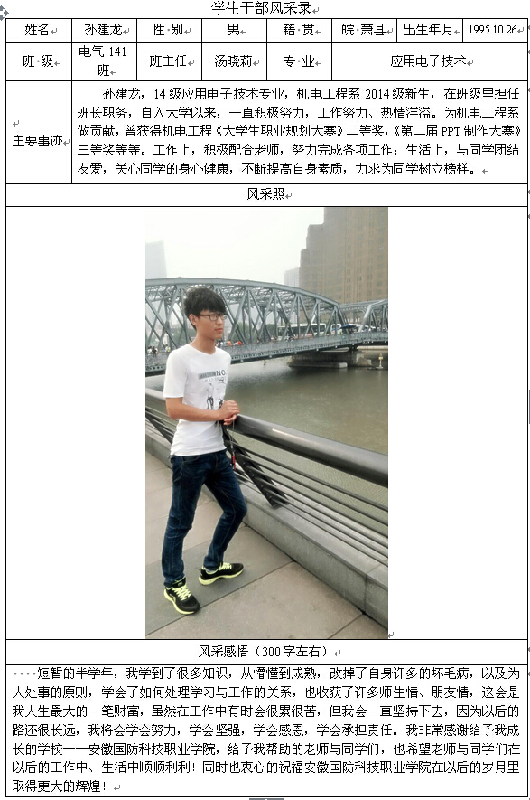 机电工程系学生干部风采录——孙建龙