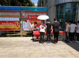 炎炎夏日临近,为进一步加强校园安全教育,保证学生生命安全,帮助广大学生增强防溺水安全意识,掌握防溺水知识技能,提高自救互救能力。在2019年5月23日中午,电气技术学院十四届团总支学生会在学校食堂门口开展“预防溺水珍爱生命”宣传活动。