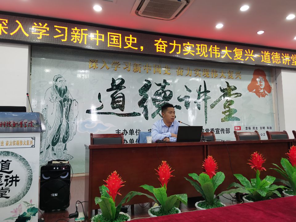 最后,由电气技术学院学生代表宋海龙,谈谈作为一名大学生,他对本次“深入学习新中国史,奋力实现伟大复兴”道德讲堂学习的感受。