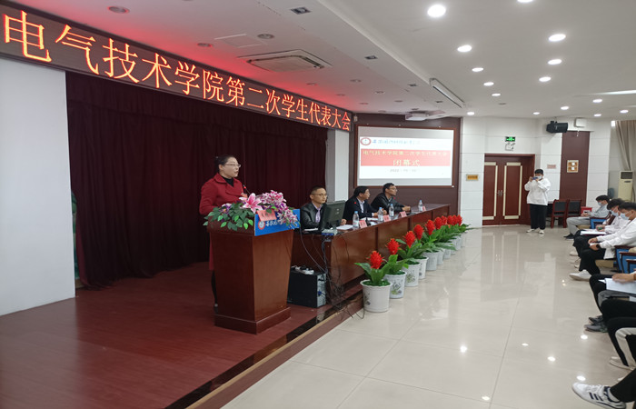 会上校团委副书记张凤代表校团委对大会的召开表示热烈祝贺,她高度赞扬了电气技术学院学生会为学校的发展建设作出的积极贡献。她要求,广大青年要以高度的政治自觉、思想自觉、行动自觉,坚定跟党走,坚决听党指挥,以百倍的信心、勇气和干劲在新征程上努力成为担当民族复兴大任的时代新人,勇敢担负起新时代党赋予的光荣使命,在实现中国梦的生动实践中放飞青春梦想。