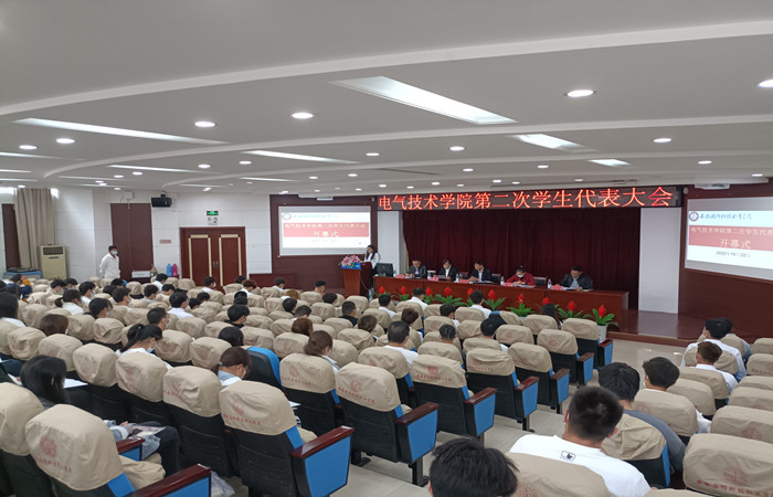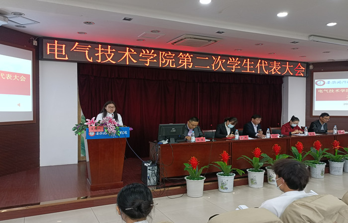 为进一步夯实我院学生组织建设,推动我院学生会组织改革向纵深发展,保障广大同学依法依章程参与学院治理,根据《中华全国学生联合会章程》《学联学生会组织改革方案》等有关文件精神,电气技术学院第二次学生代表大会于10月22日在校图书馆报告厅胜利召开。电气技术学院党总支书记叶启衡、校团委副书记张凤、电气技术学院党总支副书记张丽、团总支书记陈俊、辅导员纪远和80名学生代表参加了此次会议。