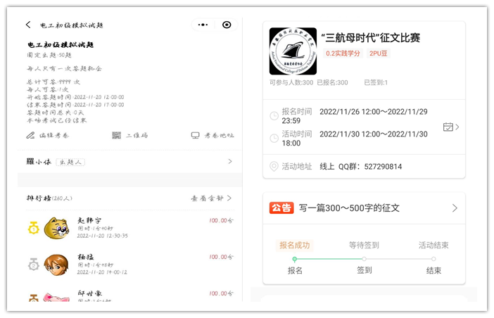 11月20日,自动化创新协会在线上开展了“电工知识答题”活动。11月26日—11月30日,船舶爱好者协会举办“三航母时代”线上征文比赛