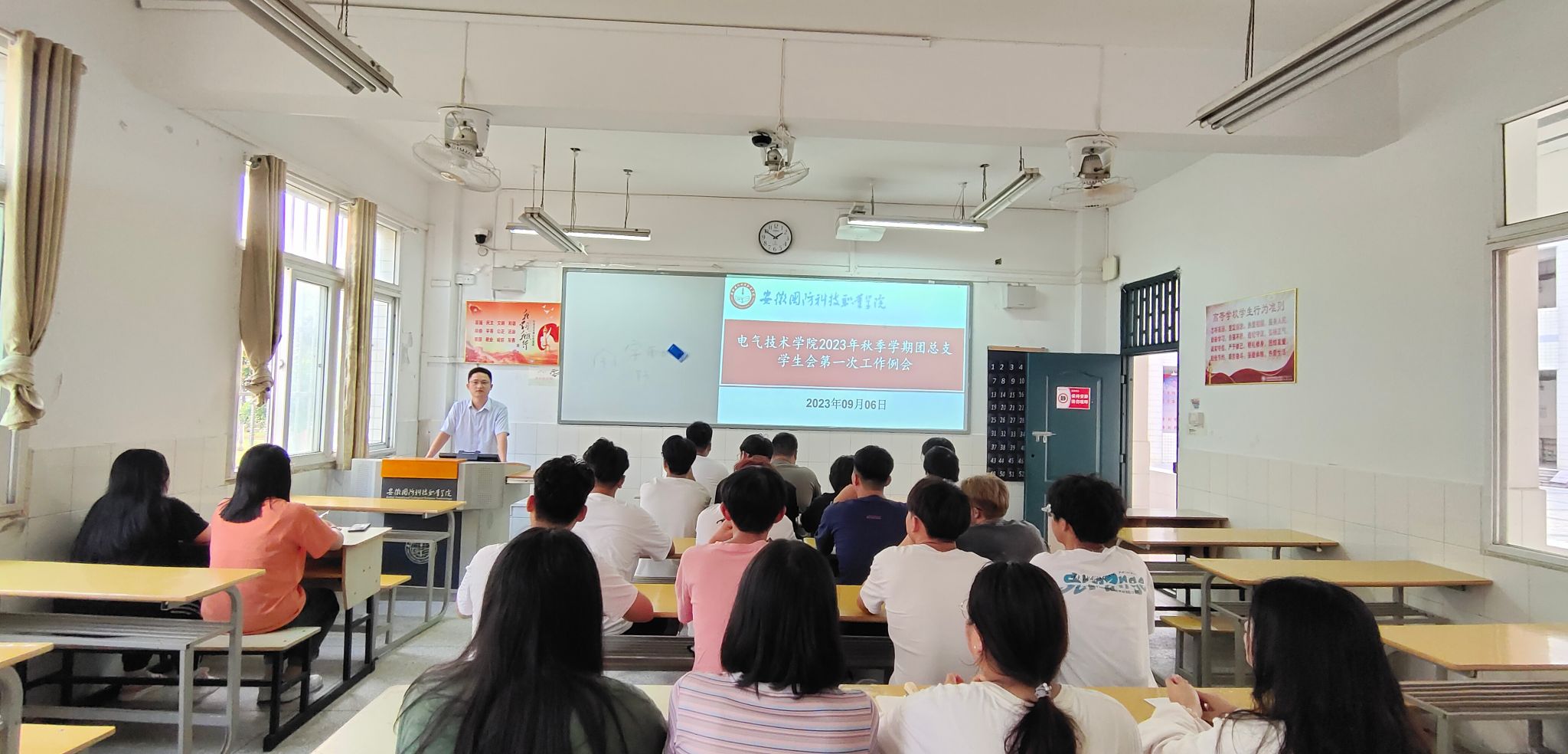 为切实做好新学期各项工作,提升学生干部的工作能力和工作效率,规划各部门本学期工作要点,理顺工作思路,9月6日下午电气技术学院在2教102组织召开2023年秋季学期第一次工作例会。会议由电气技术学院团总支书记陈俊主持,电气技术学院团总支学生会全体学生干部参加了此次会议。