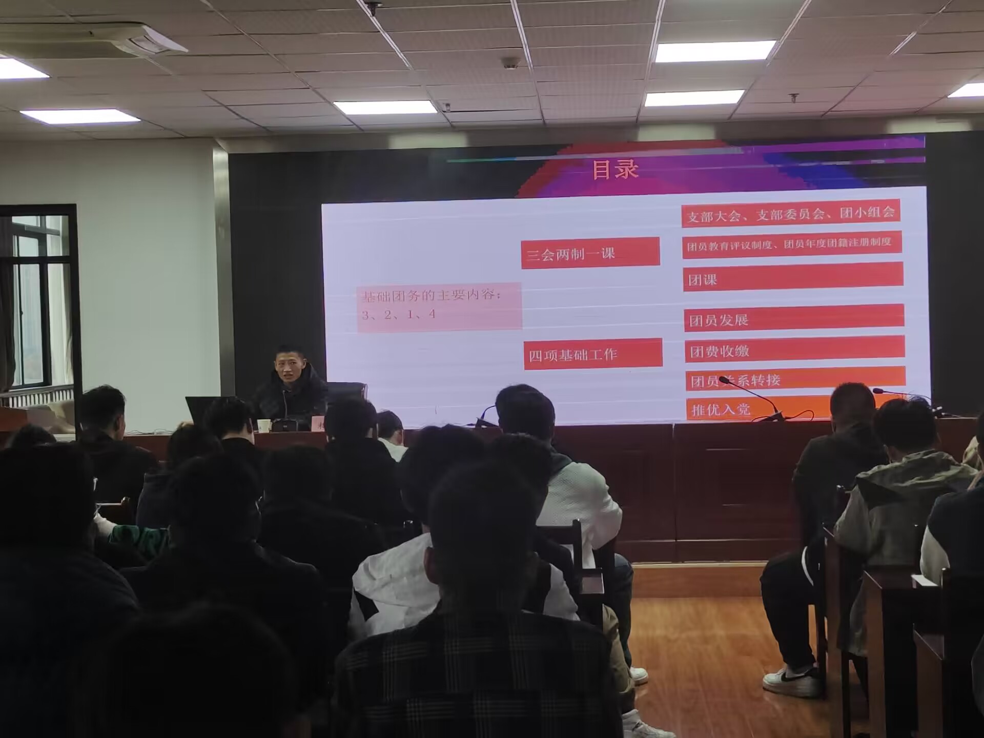 校团委干事朱俊杰就三会两制一课的相关要求,团员发展、团费收缴、团员关系转接、推优入党等四项基本工作进行了细致的讲解。