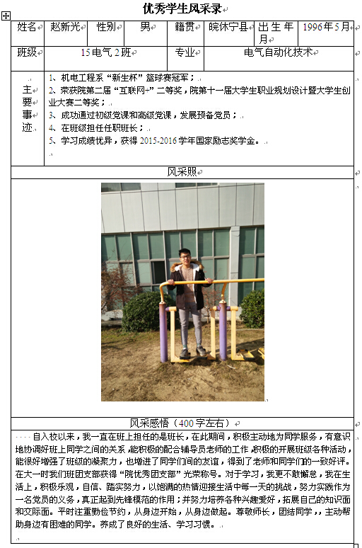 机电工程系优秀学生风采录——赵新光