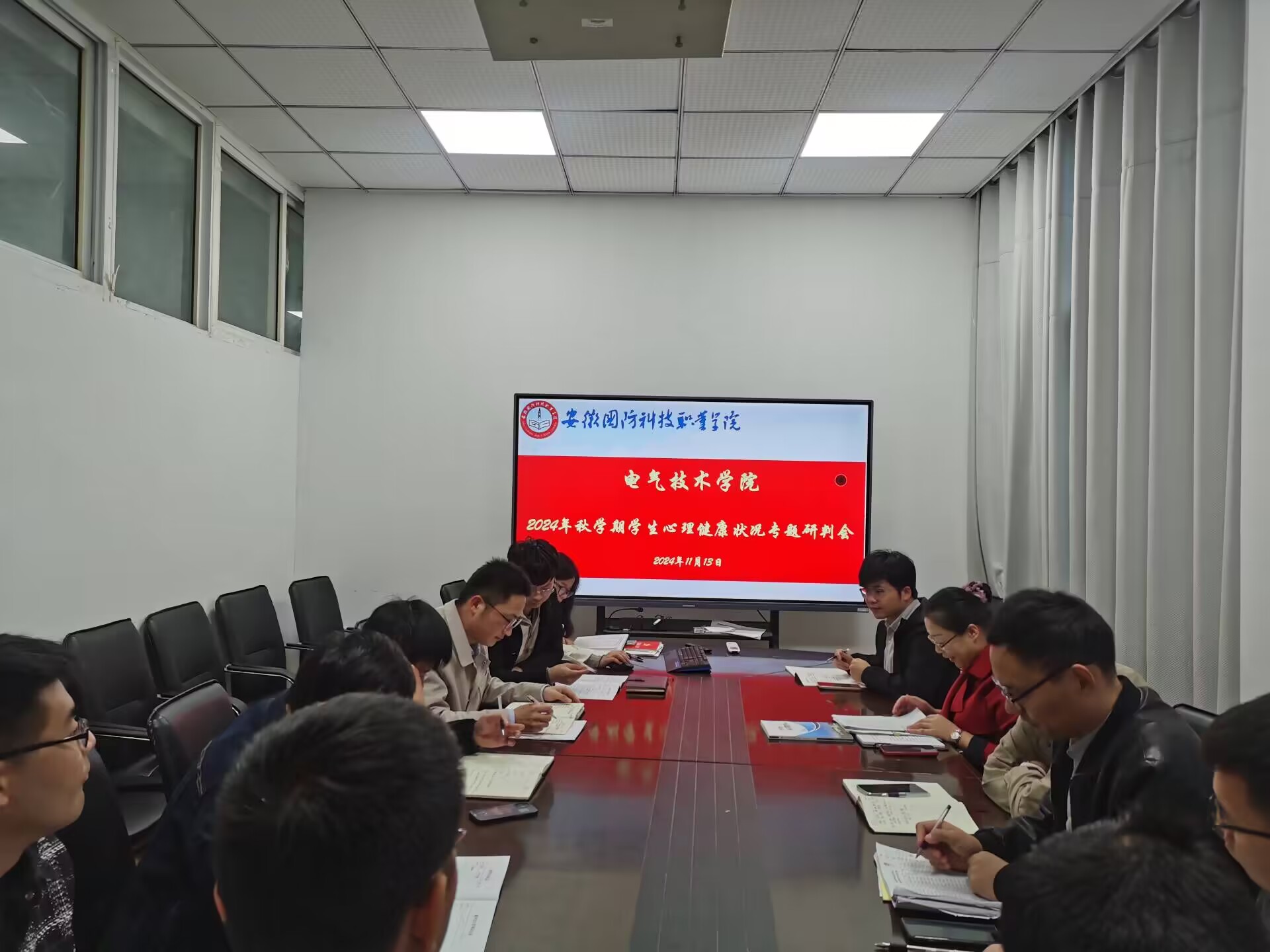 本网讯(电气技术学院 王星星)为持续推进学院心理健康教育工作,指导2024年秋学期大学生心理健康测评及访谈工作,11月13日下午,电气技术学院召开学生心理健康状况专题研判会。学院党总支副书记张丽、全体24级辅导员参加此次会议。