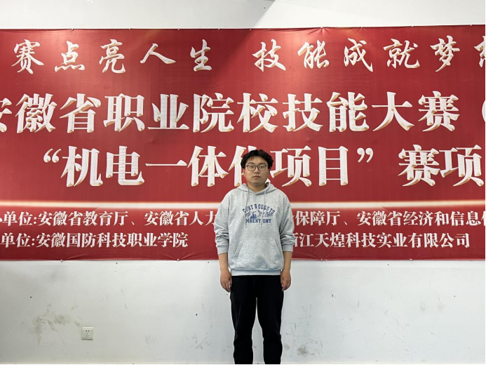 杨帅,共青团员,电气技术学院电气自动化专业2020级学生。2020年升入本校以来,时刻将学习放在首位,在认真学习的同时,积极参加职业技能类竞赛,加强自己的专业技能,曾获“全国职业院校技能大赛高职组机电一体化项目团体三等奖”、“安徽省职业院校技能大赛高职组机电一体化项目团体二等奖”。