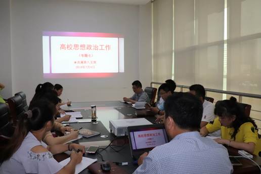 按照直属第八党支部的学习计划,7月4日下午,本支部开展了一次主题“高校思想政治工作”的职工集体学习活动。本次活动由直属第八支部书记、网络信息中心(图书馆)主任李中永主持,图书馆、网络信息中心、实训中心三个部门全体职工参加了学习。