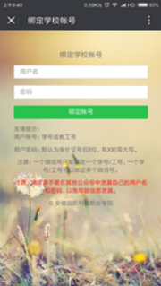 关注移动校园后,点击“应用服务”按钮,选择任意一个功能菜单即可进入绑定界面,输入用户名和密码,点击“绑定账号”即可。(注:用户名为学号或教工号,密码为身份证后八位,有X需大写。)
