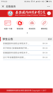2、点击“应用服务”|“后勤服务”菜单,再点击“校园一卡通”图标(第一次使用要按提示绑定账号)。