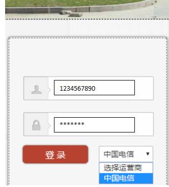 2、点开后自动跳转页面输入认证过的学号及密码,选择运营商“中国电信”;如下图: