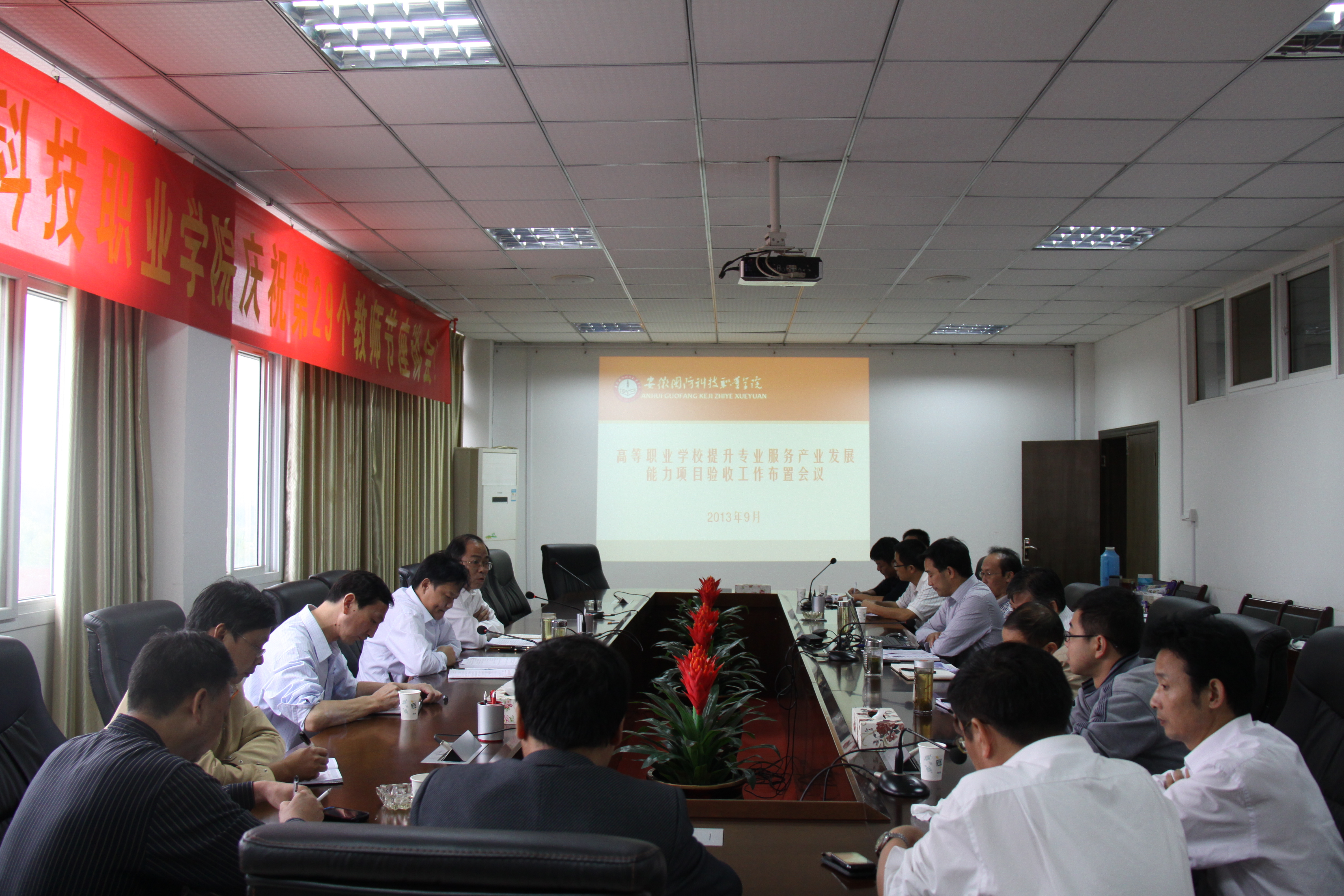 副院长丁守宝传达了省教育厅923日召开的“安徽省提升专业服务产业发展能力项目验收工作布置会”精神,对验收工作进行了初步安排。