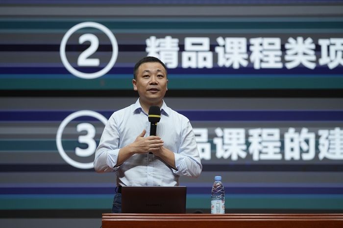 首先,朱修传处长代表教务处(科研处)对沙有闯院长表示了热烈的欢迎和诚挚的感谢,并介绍了沙院长丰硕斐然的教学成果。接着沙有闯院长结合长期的教学实践和在线精品课程建设经验,从以下三个方面展开了“深耕课堂教学,培育精品课程”专题讲座,一是分析数字化转型背景下的三教改革,二是解读精品课程类项目的相关政策,三是具体介绍精品课程的建设内容和思路。沙院长重点介绍了在线精品课程申报要求,结合实际案例向各位老师详细解读了申报的总体要求、评价指标和课程建设材料等,分享了自己的心得。整场讲座内容丰富,具有很强的实用性,对beat365教师申报在线精品课程具有很好的借鉴作用。所有与会老师认真听讲、详实记录。讲座结束后,沙有闯院长与参会教师进行了探讨交流,取得了良好的培训效果,为后续在线精品课程建设奠定了基础。最后,白斌丽副处长作总结讲话,她对沙有闯院长的引领分享表示十分感谢,然后对全体老师提出期望,希望老师们结合自身的实际情况,依托课程建设,深入推进在线精品课程的建设和申报,从个人成果转化为校级成果,再升级到省级、国家级成果。