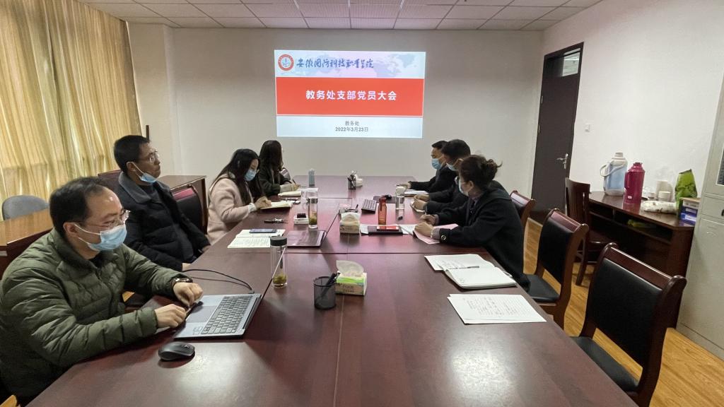2022年3月23日下午,教务处党支部在秉心楼1206会议室召开党员大会,组织开展“学习十九届六中全会精神”专题学习会,使会议精神深入到每一位老师的心中。