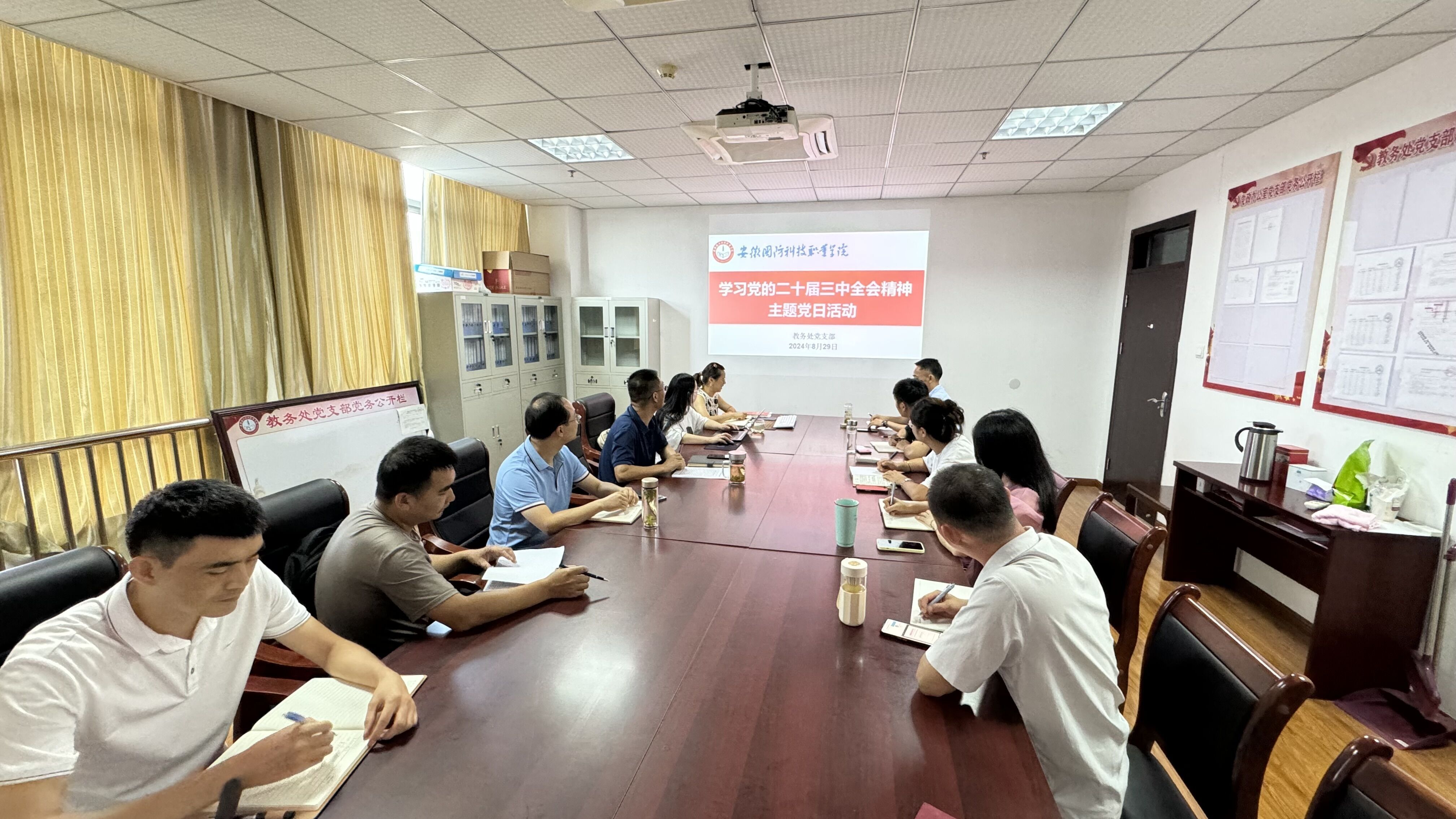 8月29日下午4点半教务处党支部在秉心楼1203会议室召开党员大会,专题传达学习党的二十届三中全会精神。支部书记朱修传主持会议。会议强调,我们要把学习好贯彻好党的二十届三中全会精神作为当前和今后一个时期的重大政治任务,不断增强坚定拥护“两个确立”、坚决做到“两个维护”的政治自觉、思想自觉、行动自觉,与深入学习贯彻习近平总书记关于全面深化改革、关于教育科技人才的重要论述一体贯通起来,与从政治高度推进学校事业改革发展,特别是与学校“双高”建设有机结合起来,深刻认识全会重大意义,准确把握重点学习内容,密切联系学校办学实践,以有力举措坚决抓好贯彻落实各项工作,切实把全会重大改革部署转化为推动高质量发展的实际成效。要围绕深化教育科技人才体制机制一体改革,持续深化综合改革,以深化拔尖创新人才培养改革,全面提高人才自主培养质量;不断健全完善以高质量党建引领高质量发展的制度机制,为以教育强国建设支撑引领中国式现代化不断做出新的更大的贡献。