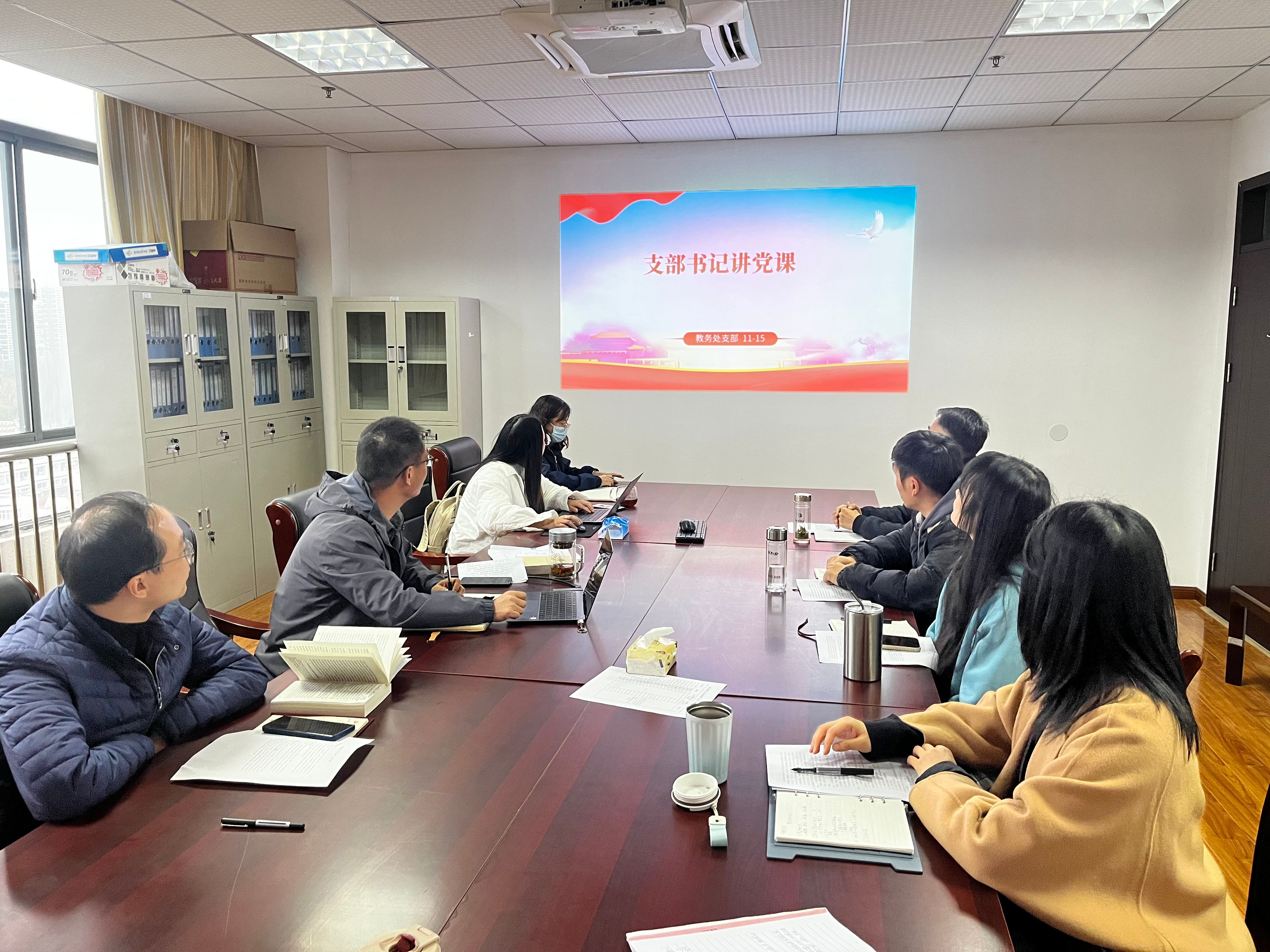 为进一步统一思想,带领支部党员学思想、强党性、重实践、建新功。11月15日下午,教务处党支部在党员活动室组织开展支部书记上党课活动。