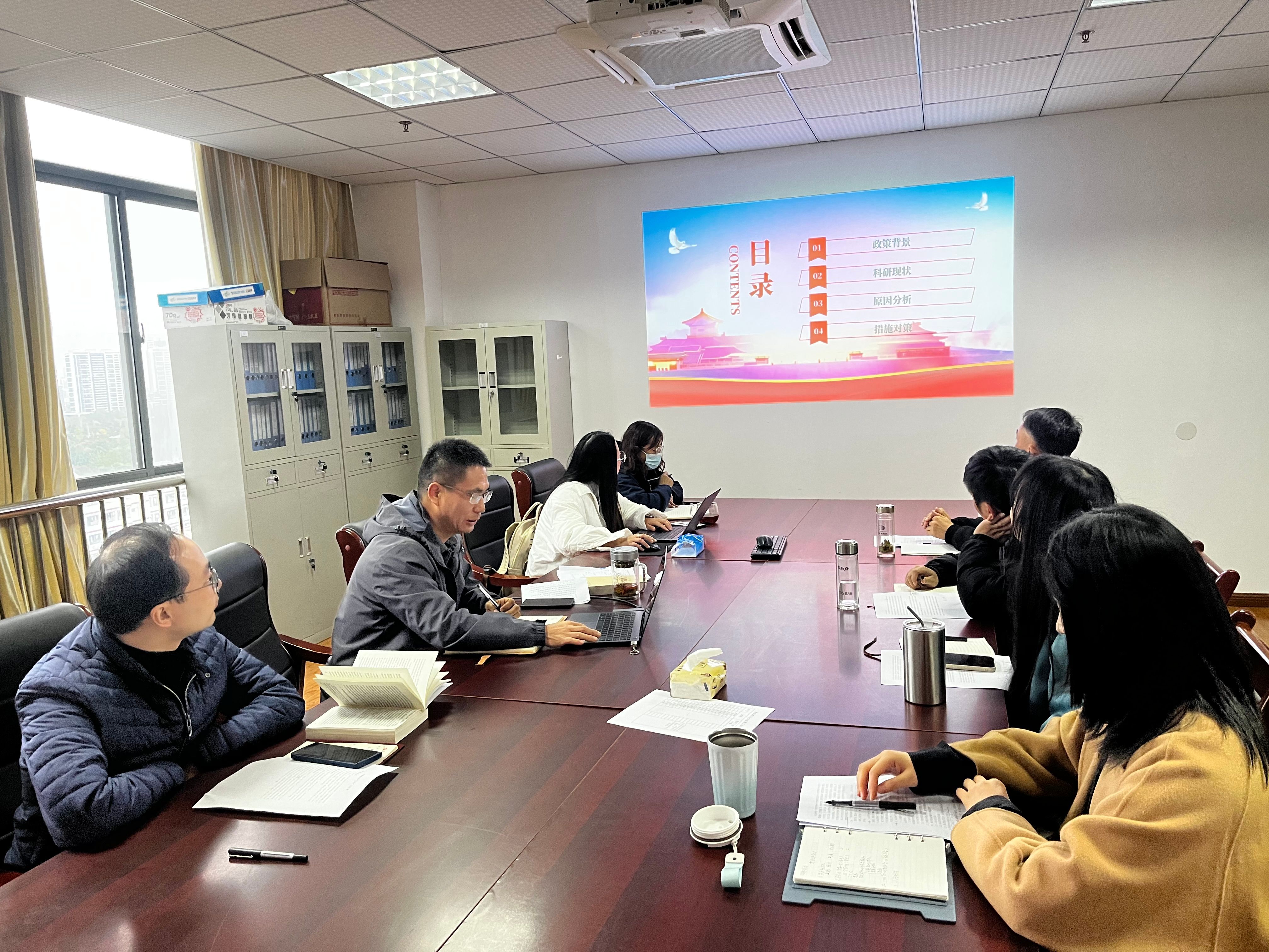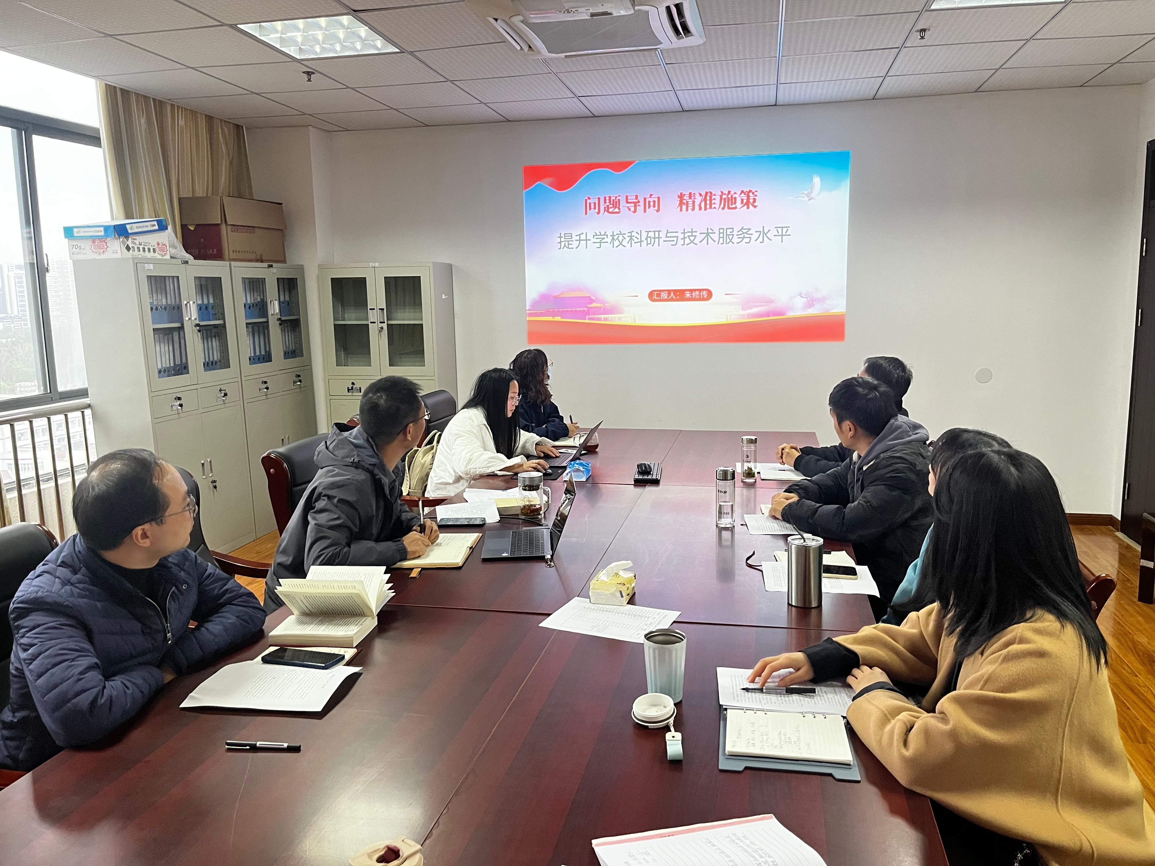 支部书记朱修传以“问题导向,精准施策—提升学校科研与技术服务水平”主题为全体党员讲授了一堂生动的专题党课。他从习近平新时代中国特色社会主义思想、二十大报告、职教二十条等介绍了教育、人才、科技、创新的政策背景;从科研项目、企业横向研究项目、授权的专利数量、成果转化数量分析学校的科研现状,并且对标国家“双高校”科研与技术服务监测指标、安徽省高职院校科研与技术服务监测指标、安徽省技能型高水平大学建设标准、职业本科专业的办学标准分析学校科技研发与转化存在的差距;从校企合作、创新团队、激励机制三个方面深刻剖析原因;最后他提出通过深化校企合作,搭建科研与技术服务平台,加大引培力度,组建高水平科研创新团队,开展制度梳理,建立健全教科研管理制度等具体对策,提升学校科研与技术服务水平。