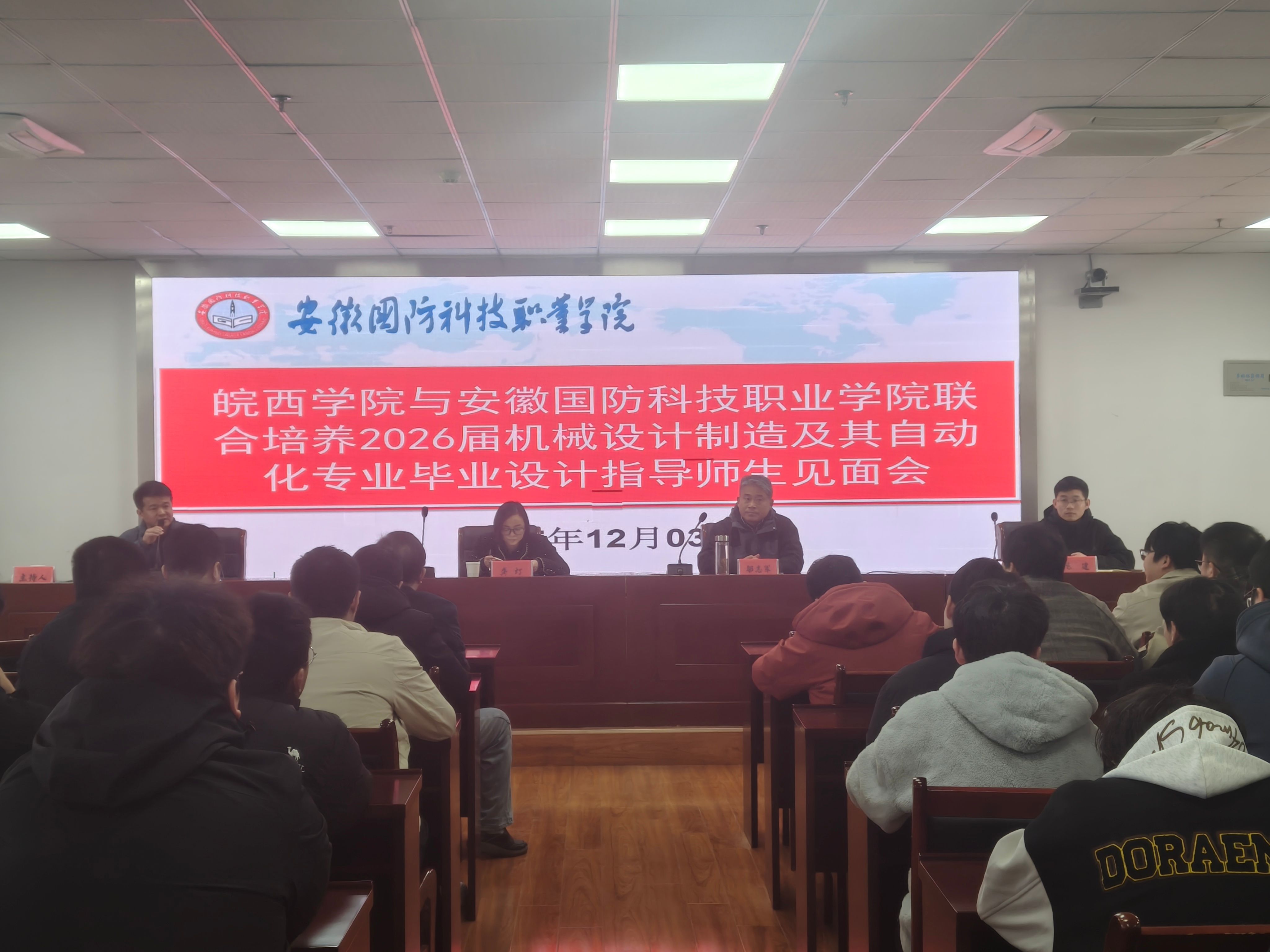 (机械技术学院 陈云)为扎实推进专升本联合培养学生的毕业论文指导工作,搭建师生高效沟通桥梁,机械技术学院于12月3日顺利召开2026届机制(联培)本科生毕业设计师生见面会。皖西学院机械设计制造及其自动化专业负责人邬志军、beat365智能制造教研室主任龚灯、指导教师、辅导员以及2026届本科机制班全体同学参加会议。