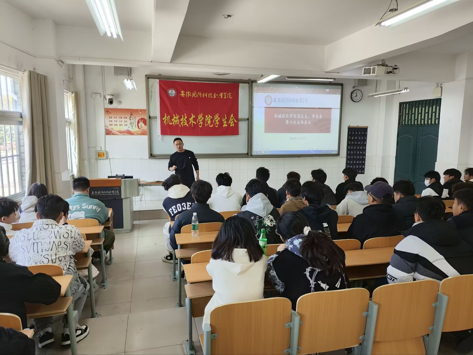 (学生通讯员彭章雨)2023年11月15日上午,机械技术学院团总支于教2楼105教室召开团总支、学生会例会。此次会议主要围绕学风建设、第二十届团总支学生会作风建设和第四届校学代会代表及委员选举三个方面进行开展。本次会议由机械技术学院团总支书记王腾州主持,机械技术学院团总支、学生会全体成员、挂靠协会负责人、各班级团支部负责人、学生党员代表及新发展团员代表参加本次会议。