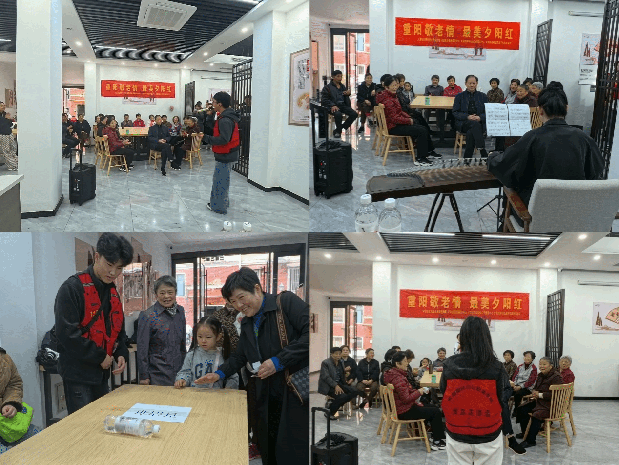 活动当天社区内充满着邻里相聚的热闹烟火气与敬老爱老的温情暖意的深度融合,既充满欢声笑语,又处处流露着贴心关怀的节日气氛。机械薪火志愿服务队准备了古筝演奏、歌曲演唱和娱乐项目等活动,突出“老少共庆”的氛围,传递学校与社区对老年人的关爱。