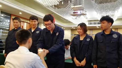 6月12日,机械技术学院模具设计与制造专业在白天鹅大酒店举行2018级现代学徒制试点班开班暨拜师仪式。机械技术学院党总支书记张宗江、机械技术学院副院长郭利、联德精密国防学院研发中心顾问夏世林、联德精密(中国)股份有限公司企划部经理康世杰、联德精密国防学院研发中心负责人赵恒、联德精密国防学院研发中心六位模具研发工程师、模具专业带头人张爽华、班主任张艳华及18级全体学徒制班学生参加了拜师仪式。仪式由副院长郭利主持。