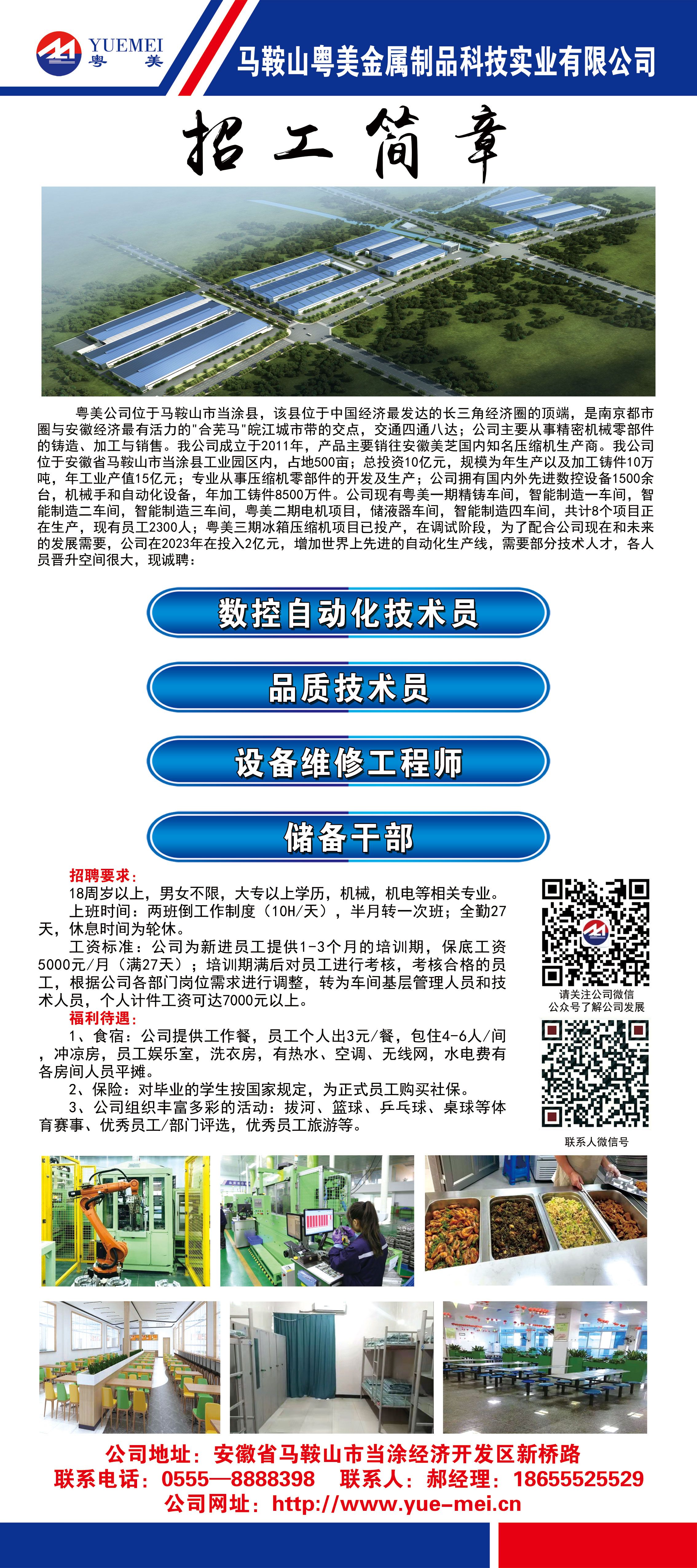 马鞍山奥美金属制品科技实业有限公司招工简章