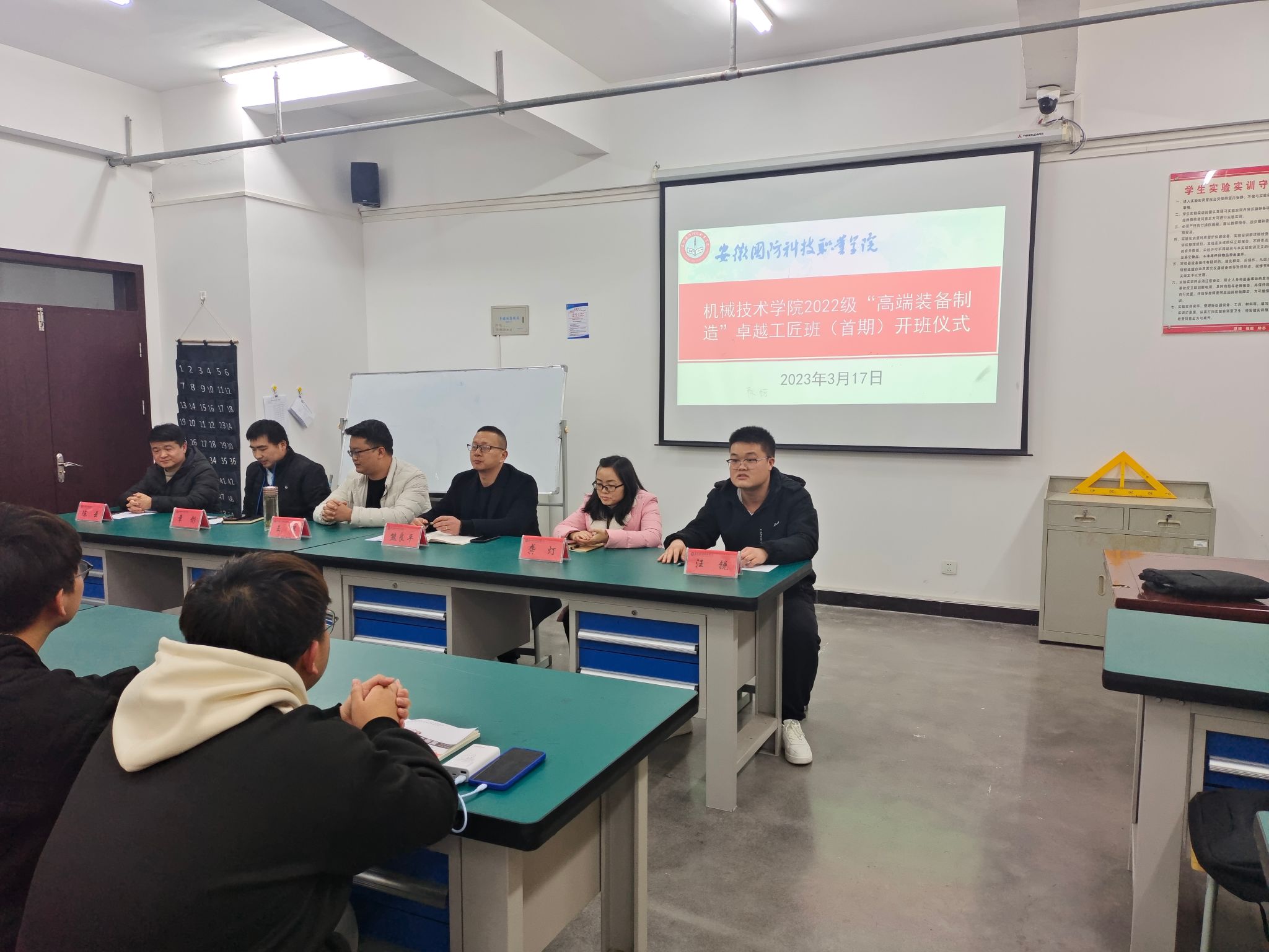 (机械技术学院 陈云)为进一步激发学生学习专业技能的积极性,强化学生实践技能培养,3月8日,机械技术学院在秉心楼303举行了2022级“高端装备制造”卓越工匠班(首期)开班仪式,开班仪式由工匠班班主任汪锐主持。机械技术学院副院长熊良平、多轴加工等5个工作室指导老师及全体学员出席了仪式。