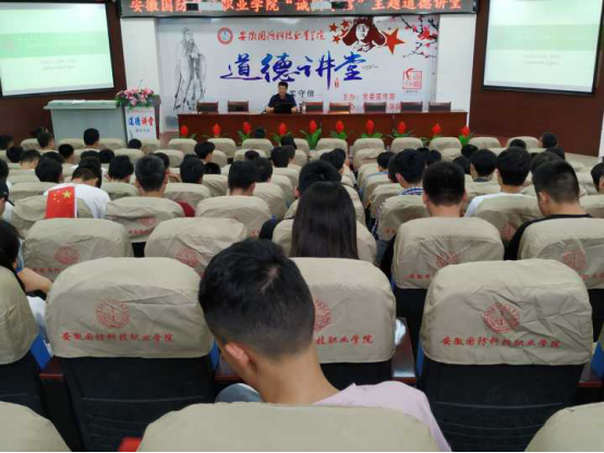 为深入贯彻党的十九大精神,积极弘扬社会主义核心价值观,全面加强师生思想道德建设,大力弘扬中华民族优秀传统。6月20日下午,以“诚实守信”为主题的道德讲堂活动在校图书馆报告厅隆重举行。本次道德讲堂活动由校党委宣传部主办,机械技术学院承办。机械技术学院党总支书记张宗江,党总支副书记陈思、皖西学院马克思学院教授刘孝友等领导应邀出席,机械技术学院全体教职工,其它学院教师代表和全校200余名学生参加了此次活动。
