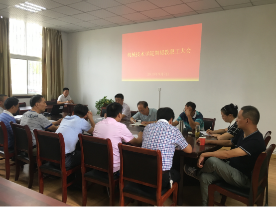 9月2日下午3点,机械技术学院在120会议室召开2018-2019学年第一学期全体教职工会议。黄祥院长、张宗江书记以及机械技术学院全体教职工参加会议。会议由黄祥主持。