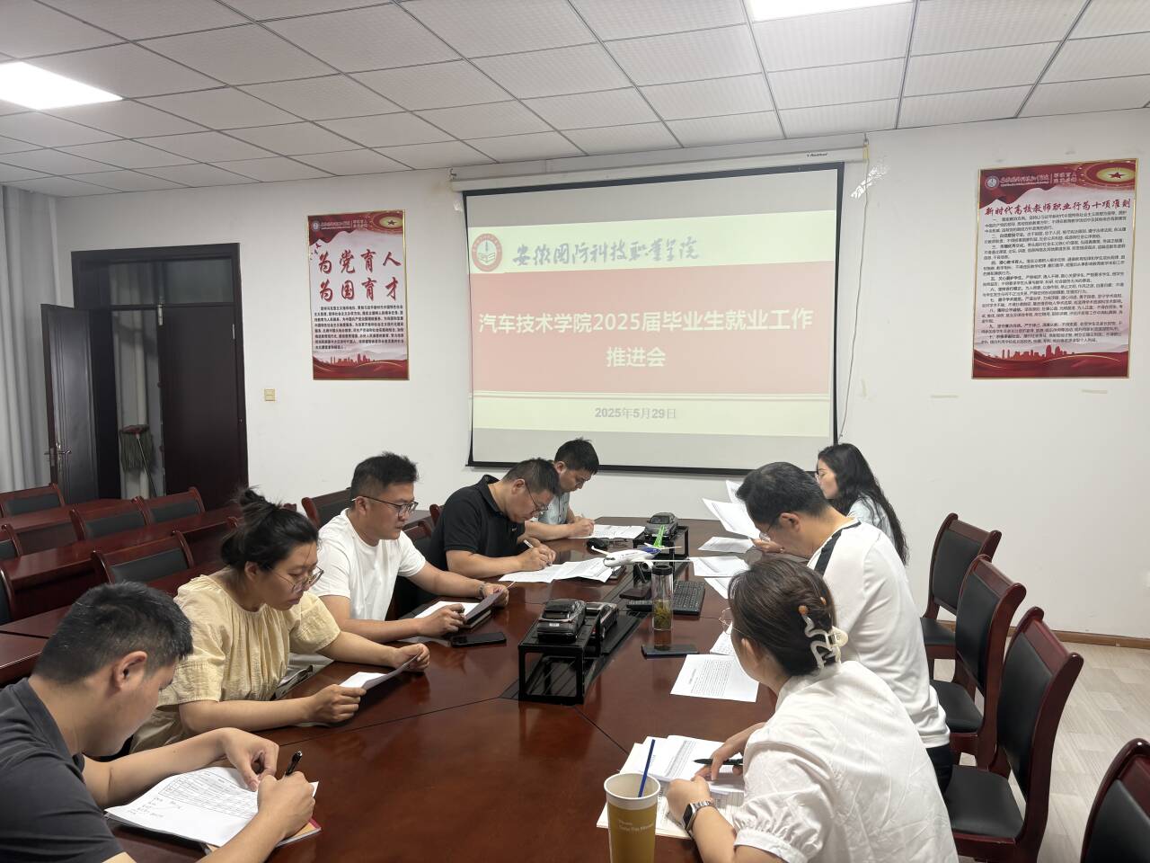 本网讯(汽车技术学院 黄世超)为落实立德树人根本任务,促进2025届毕业生高质量充分就业,5月29日上午,汽车技术学院召开2025届毕业生就业工作推进会。汽车技术学院就业工作领导小组、全体毕业班辅导员参加会议,会议由党总支副书记陈梦雅主持。