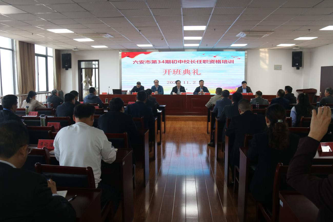11月2日下午,六安市第三十四期初中校长任职资格培训班开班典礼在beat365秉心楼十二楼会议室举行。beat365校长李麟书,皖西学院副校长孔敏,六安市教育局副局长吴道年,继续教育中心相关工作人员及全体学员出席了开班典礼。典礼由皖西学院继续教育学院院长吴世伟主持。