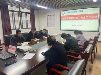 11月18日继续教育学院组织召开了部门安全工作会议,会上边述华副院长带领大家学习了学校有关安全制度和习近平对广东珠海市驾车冲撞行人案件重要指示精神,着重强调:安全问题无小事,部门所有职工一要持续强化安全意识,加大自身安全知识学习力度;二要进一步完善规章制度,严格规范工作流程;三要进一步增强应急能力建设,强化应对突发情况的能力。