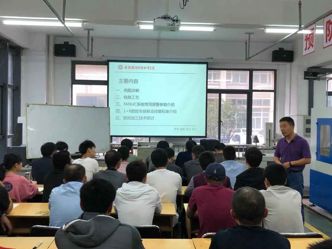 本次培训主要有“多工序数控机床操作调整工”和“工具钳工”两个工种,培训分为理论和实操两个部分。由新时代工匠学院的资深教师授课,主要讲授了比赛的技术标准,比赛中常见的错误和注意事项,并对大赛中常见的实例进行了现场演示和指导。