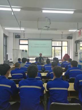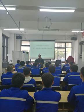 随后,由徐俊老师针对车工及数控车实训进行了专门的安全培训,徐俊老师从个人着装、工量具安全使用、设备安全操作、设备维护、劳动纪律等发面进行了详细的讲解,确保实训安全。本期学生将在学院接受为期一周的培训。