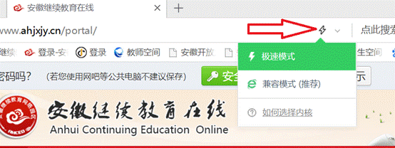 2. 点击系统里“开始考试”,如果出现“右键点击运行Adobe Flash Player”的提示(如下图一),则按照提示右键点击运行。如果右边显示空白(如下图二),请切换模式(点击图标,极速和兼容模式相互切换一下),如图三。这时若提示安装flash插件请根据提示步骤下载安装,安装好重启后使用。如果无提示还是打不开,请看步骤3。