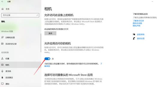 6. 电脑相机设置里允许访问相机,如下查看。