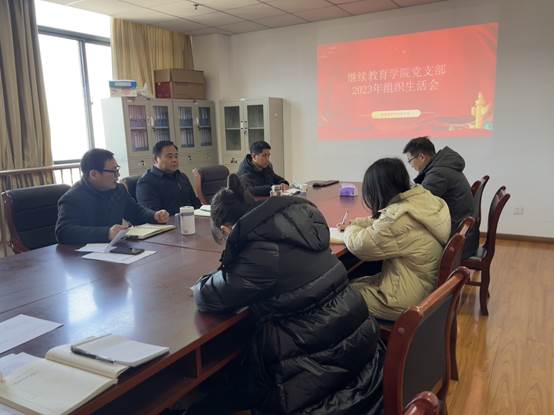 为深入学习贯彻党的二十大精神,进一步确保主题教育见成效,坚持不懈用习近平新时代中国特色社会主义思想凝心铸魂,根据上级党委工作要求,中共beat365在线唯一官网继续教育学院党支部于2024年1月24日下午在综合楼12楼1206会议室召开了组织生活会。会议由支部书记李中永主持,分管领导黄存东主任出席会议。