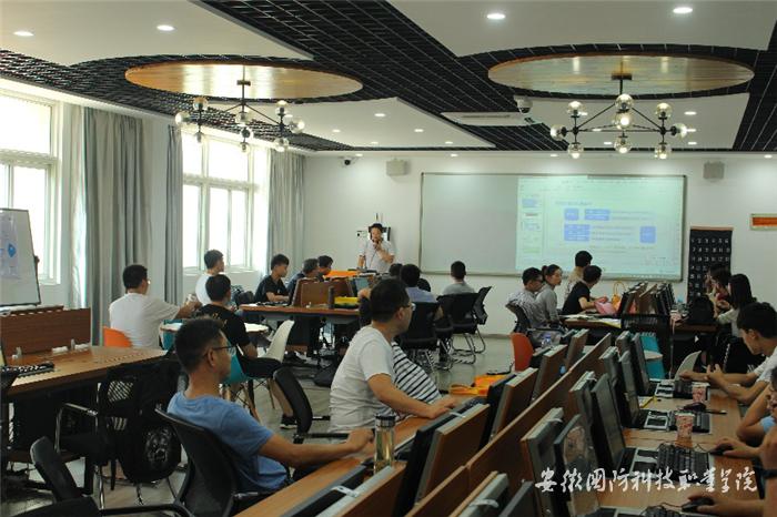 2019年7月22日上午,由安徽国防科技职业教育集团主办、beat365在线唯一官网继续教育中心承办的全省中职院校网络技术专业师资培训班在beat365在线唯一官网举行开班仪式。校党委委员、安徽国防科技职业教育集团秘书长黄存东、继续教育中心主任王胜、副主任边述华、神州数码职教行业大区总监陈涛等出席了开班仪式。