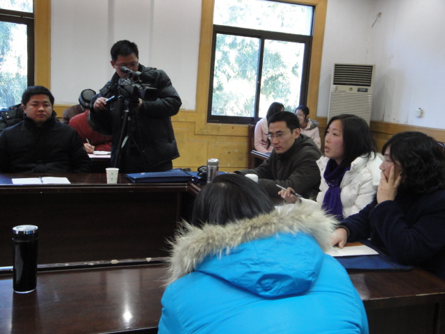 17日下午,全体与会思政课教师在皖西学院C305教室观摩了刘孝友副教授的《思想道德修养与法律基础》现场公开课教学,刘老师精彩的课堂教学使思政课教师感受深刻。观摩课后,四所院校的思政课教师在皖西学院第二会议室举行了座谈会,就新形势下如何加强思政课教育教学工作展开广泛的交流与探讨。张圣霞老师和李倩老师代表思政部就我院思政课教学现状、近几年思政课和形势政策课教学工作所取得的成绩与目前存在的不足作了简短的发言。