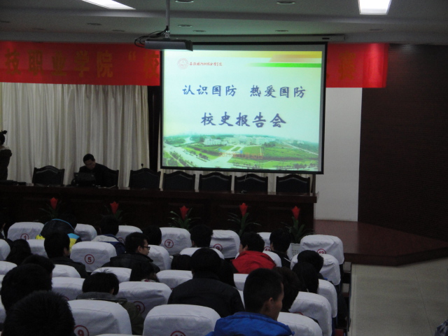 2011年11月30日下午14:30,由思政部主办的“认识国防,热爱国防”校史报告会在我院报告厅隆重举行,报告会由思政部主任吴方庭主持。院党委委员、工会主席李建新为我院师生奉献了一场精彩而又鼓舞人心的校史讲座。