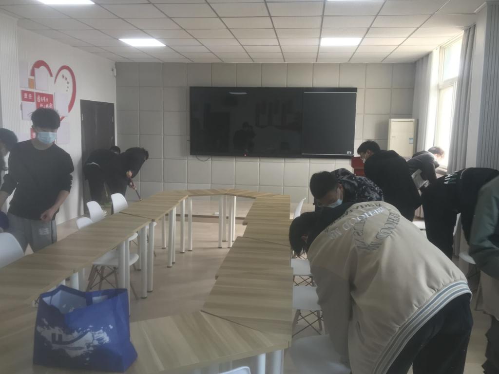 全体会员来到智慧教室,感受到了浓浓的马克思主义理论氛围,学习了“六有大学生”的要求,即有理想、有追求、有担当、有作为、有品质、有修养。接着,学会成员进行了分工。然后,大家热火朝天的行动起来,教室整理、地面整洁、卫生清扫、消毒等有条不紊的进行。