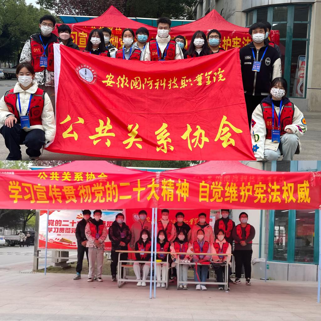 2022年12月4日,是我国第九个“国家宪法日”,也是中国现行宪法公布实施四十周年。为贯彻《安徽省教育厅关于开展2022年教育系统“宪法宣传周”系列活动的通知》(皖教秘政法[2022]93号)的文件精神,为深入学习党的二十大精神,全面贯彻落实习近平法治思想,引领广大师生牢固树立宪法意识,维护宪法权威,公共关系协会决定在全校范围内开展“国家宪法日”宣传活动。