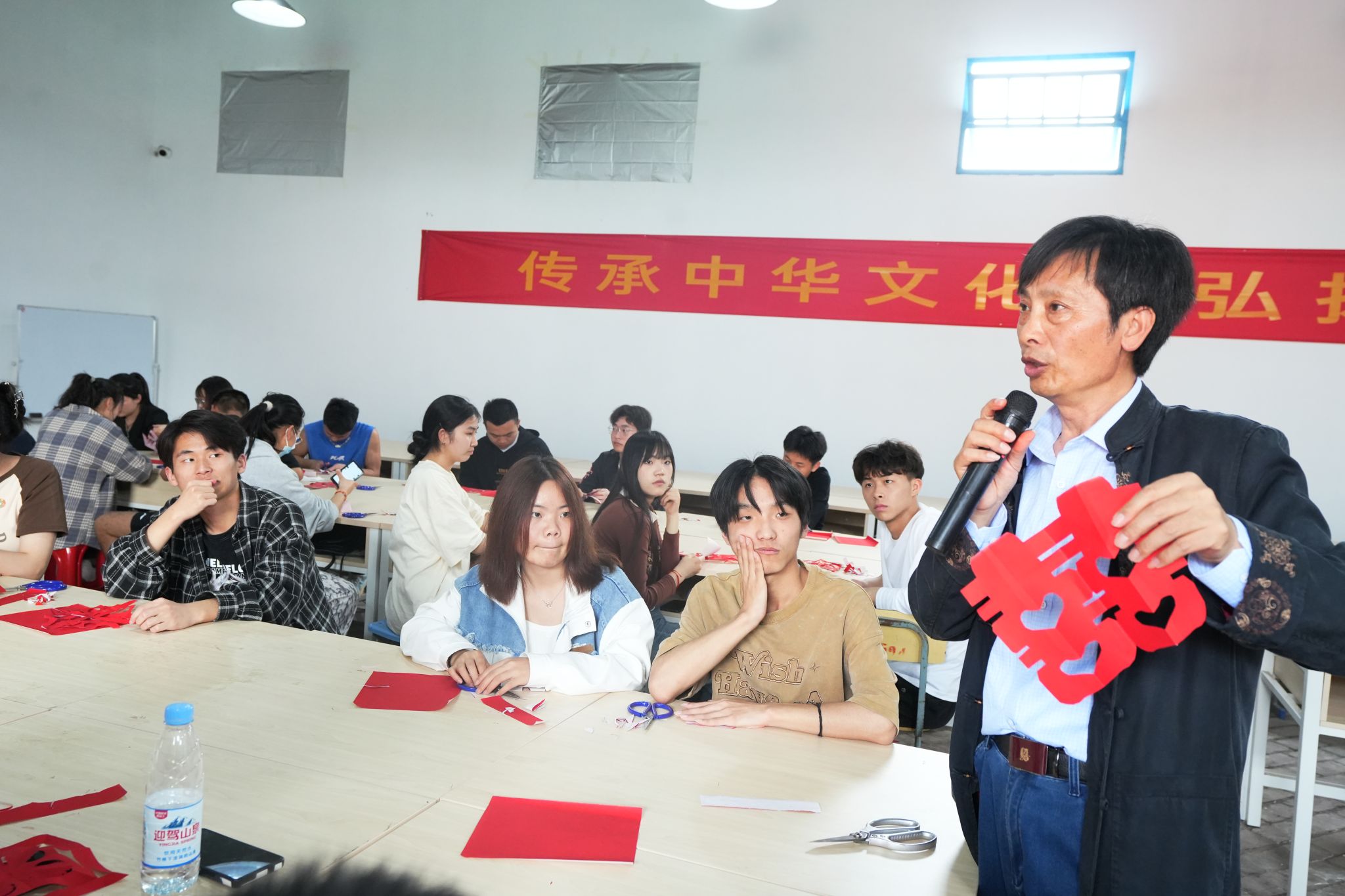 剪纸是中华民族艺术宝库的珍品,源远流长,不断发展。为了更好地保护和传承非物质文化遗产,使传统文化深入人心,培养学生对非遗的认知和兴趣,马克思主义学院组织了2022级学生赴金安区翁墩乡杨公村开展了一场特别的思政劳动实践课。