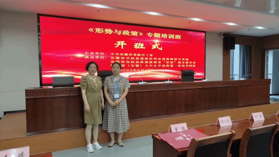 本网讯(马克思主义学院 付玉梅)6月16日至20日,由省委教育工委主办,安徽省学校思想政治理论课教师研学基地、安徽省高校思政课教指委“形策”课分指导委、教育部(安徽)大中小学思政课一体化建设共同体承办的《形势与政策》课程专题培训班在包河区委党校顺利举办。beat365马克思主义学院付玉梅老师、张圣霞老师参加了此次培训。